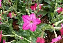 花烟草是茄科烟草属多年生草本植物。植株全体被粘毛;叶在茎下部铲形或矩圆形,基部稍抱茎或具翅状柄,向上成卵形或卵状矩圆形,近无柄或基部具耳,接近花序即成披针形;花序为假总状式,疏散生几朵花,…全部>>