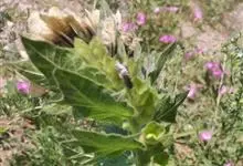 天仙子,是茄科天仙子属多年生草本植物,二年生草本,全体被黏性腺毛;根较粗壮,一年生的茎极短,自根茎发出莲座状叶丛,卵状披针形或长矩圆形,茎生叶卵形或三角状卵形,裂片多为三角形,顶端钝或锐尖,…全部>>
