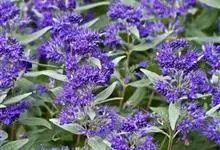 蒙古莸:为唇形科莸属落叶小灌木。常自基部即分枝,嫩枝紫褐色,圆柱形,有毛,老枝毛渐脱落。叶片厚纸质,线状披针形或线状长圆形,背面密生灰白色绒毛。聚伞花序腋生,无苞片和小苞片,花萼钟状,花冠蓝紫色。…全部>>
