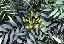 十大功劳 Fedde),小檗科十大功劳属常绿灌木植物。叶子较大且较多,呈椭圆形,绿色,表面光滑无毛,叶柄较长;花朵较小,呈多边形,黄色,花瓣对称分布,表面有绒毛;果实呈圆形,褐色,…全部>>
