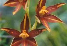 带唇兰:假鳞茎暗紫色,圆柱形,罕为卵状圆锥形,被膜质鞘,顶生1枚叶。叶狭长圆形或椭圆状披针形。花葶直立,纤细,长30-60厘米,具3枚筒状膜质鞘,基部的2枚鞘套叠;总状花序长达20厘米;花序轴红棕色,…全部>>
