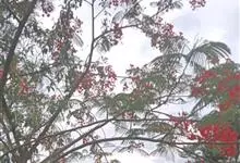 凤凰木 Raf.) ,别名火树、红花楹、凤凰花、火凤凰、金凤花、红楹,是豆科凤凰木属高大落叶乔木,树皮灰褐色,粗糙。二回偶数羽状复叶互生,矩圆形,两面均被柔毛。伞房式总状花序,花大,花瓣5枚,圆形,…全部>>