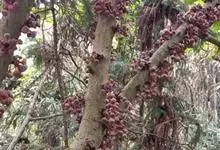 大果榕是桑科榕属的小乔木,株高可达10米;幼枝被柔毛;叶互生,宽卵状心形或近圆形;雄花无梗、匙形、花丝长,雌花生于雌株榕果内,子房白色;榕果簇生于树干基部或老茎短枝上、扁球形或陀螺形,…全部>>