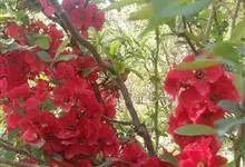 贴梗海棠 Nakai)是蔷薇科、木瓜海棠属植物。落叶灌木,高达2米,枝条直立开展,有刺。叶片卵形至椭圆形,稀长椭圆形,长3-9厘米,宽1.5-5厘米。花先叶开放,3-5朵簇生于二年生老枝上。…全部>>