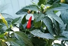观赏辣椒,观赏辣椒根系发达,茎直立,茎部木质化,分枝能力强,分枝习性为双叉状分枝和三叉分枝。小果类型的植株高大,分枝多,大果类型的则相反。单叶互生,全缘,卵圆形,叶片大小、色泽与青果的大小色泽有相关性。…全部>>
