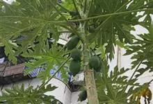 番木瓜,番木瓜科番木瓜属的常绿软木质小乔木,高达10米,具有乳汁;茎不分枝或有时于损伤处分枝;叶大且聚生于茎顶,近似盾形,叶柄中空;花单性或两性,有些品种雄株偶尔生两性花或雌花,…全部>>