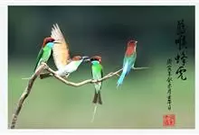 栗喉蜂虎是蜂虎科蜂虎属的鸟类。有热带鸟类羽毛艳丽的特征:喉部是栗红色的,黑色的过眼纹,翅膀和背部是绿色的,尾翼是蓝色的,飞行时翅膀下面的羽毛是橙黄色的,在阳光的照射下,它们全身闪烁着金属般的艳丽光泽,…全部>>