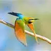 蓝颊蜂虎:是蜂虎科、蜂虎属的鸟类,共有2个亚种。体长27-33厘米,翼展46-49厘米,体重38-50克。嘴形细长而下弯,先端尖,…全部>>