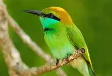 绿喉蜂虎是佛法僧目、蜂虎科的小型鸟类,共有9个亚种。身长22-25厘米,翼展29-30厘米,体重15-20克。喉绿色,额部、头顶至上背为锈红色,其余上体均为亮绿色。中央尾羽延长且端段狭细,…全部>>