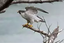 游隼yóu sǔn:是隼科、隼属的中型猛禽,共有18个亚种。体长41-50厘米。翅长而尖,眼周黄色,颊有一粗著的垂直向下的黑色髭纹,头至后颈灰黑色,其余上体蓝灰色,尾具数条黑色横带。…全部>>