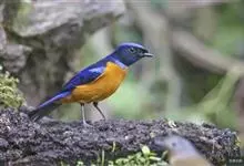 棕腹大仙鹟:体重24-28克,体长15-17厘米,是一种小型的色彩亮丽的鹟。雄鸟上体深蓝,下体棕色,脸黑,额、颈侧小块斑、翼角及腰部亮丽闪辉蓝色。与棕腹仙鹟易混淆,区别在色彩较暗。雌鸟灰褐,…全部>>