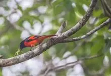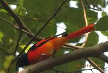 朱背啄花鸟:体重6-8克,体长81-97毫米。是一种小型的黑色及红色啄花鸟。雄鸟顶冠、背及腰猩红色,两翼、头侧及尾黑,两胁灰,下体余部白色。雌鸟上体橄榄色,腰及尾上覆羽猩红,尾黑。亚成鸟清灰色,嘴橘黄,…全部>>