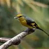 黄腹啄花鸟:体重11-16克,体长104-117毫米。是一种体型大,下腹部为艳黄色的啄花鸟,雄鸟特征为头黑色,喉部有白色纵斑、喉侧及上体成对比,两翅和尾黑色,外侧尾羽内翈具白色斑块。其余下体淡黄色。…全部>>