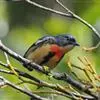 灰喉山椒鸟:共有8个亚种。体长18-22厘米。雄鸟头部和背亮黑色,腰、尾上覆羽和下体朱红色,翅黑色具一大一小的两道朱红色翼斑。中央尾羽黑色,外侧尾羽基部黑色,端部红色。…全部>>