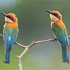 栗喉蜂虎是蜂虎科蜂虎属的鸟类。有热带鸟类羽毛艳丽的特征:喉部是栗红色的,黑色的过眼纹,翅膀和背部是绿色的,尾翼是蓝色的,飞行时翅膀下面的羽毛是橙黄色的,在阳光的照射下,它们全身闪烁着金属般的艳丽光泽,…全部>>