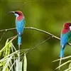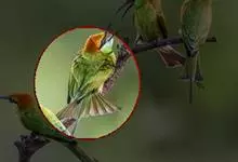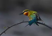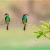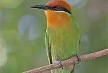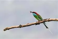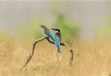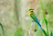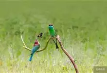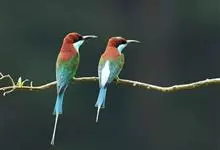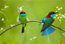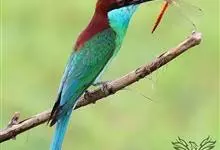 蓝颊蜂虎:是蜂虎科、蜂虎属的鸟类,共有2个亚种。体长27-33厘米,翼展46-49厘米,体重38-50克。嘴形细长而下弯,先端尖,…全部>>