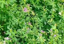 紫苜蓿,豆科苜蓿属多年生宿根草本植物,茎直立、丛生或匍匐,呈四棱形,多分枝;托叶较大,卵状披针形,小叶片呈倒卵状长圆形;花朵是成族状的总状花序;花梗呈尊钟状,花冠紫色花;果实螺旋形,…全部>>
