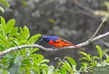 灰喉山椒鸟:共有8个亚种。体长18-22厘米。雄鸟头部和背亮黑色,腰、尾上覆羽和下体朱红色,翅黑色具一大一小的两道朱红色翼斑。中央尾羽黑色,外侧尾羽基部黑色,端部红色。…全部>>