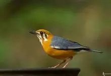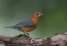 橙头地鸫是鸫科、地鸫属中型鸟类,体长18-22厘米。整个头、颈和下体橙栗色,其余上体包括两翅和尾蓝灰色或橄榄灰色,翅上多具白色翅斑。虹膜褐色或棕褐色,嘴黑褐色或黑色,脚橙黄色或肉黄色。特征极明显。…全部>>