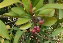 东方紫金牛是报春花科、紫金牛属植物。灌木,高达2米,通常无毛;叶厚,新鲜时略肉质,倒披针形或倒卵形,顶端钝和有时短渐尖,基部楔形,长6-12厘米,宽3-5厘米,全缘,…全部>>