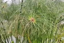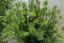 纸莎草是莎草科、莎草属的植物,具有粗壮的根状茎,高达2-3米,茎秆簇生,粗壮,直立,钝三棱形。叶退化呈鞘状,茎秆顶端着生总苞片,呈伞状簇生,总苞片叶状,披针形,顶生花序伞梗极多,细长下垂。瘦果灰褐色,…全部>>