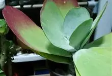 唐印为景天科伽蓝菜属的多年生肉质草本植物。植株中型,株高50厘米,宽20厘米,多分枝;叶片肉质,对生,卵形,全缘,先端钝圆,叶片淡绿色至灰绿色,表面被有厚厚的白粉,光照充足时,叶缘呈红色;圆锥花序,…全部>>