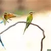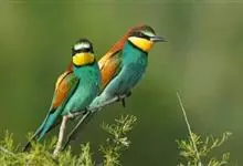 蓝颊蜂虎:是蜂虎科、蜂虎属的鸟类,共有2个亚种。体长27-33厘米,翼展46-49厘米,体重38-50克。嘴形细长而下弯,先端尖,…全部>>