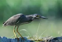 绿鹭:是鹳形目鹭科绿鹭属鸟类。体型小,头顶黑,枕冠亦黑色,上体蝉灰绿色,下体两侧银灰色;前额至后枕及冠羽墨绿色,眼后有一白斑,颊纹黑色;颚纹白色,后颈、颈侧和体侧烟灰色;背部披灰绿色矛状长羽,…全部>>