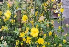 迎春花,木犀科素馨属的多年生木本植物,小枝细长直立或者呈拱形下垂;叶片呈卵形或椭圆形;花单生于叶腋处,苞片呈披针形或椭圆形,花冠为金黄色,花瓣通常为倒卵形或椭圆形;花期在6月。…全部>>