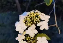 蝴蝶戏珠花 Miq.)是荚蒾科荚蒾属植物。落叶灌木,高达3米;当年小枝浅黄褐色。叶较狭,宽卵形或矩圆状卵形,有时椭圆状倒卵形。花序直径4-10厘米,外围有4-6朵白色、木型的不孕花。果实先红色后变黑色,…全部>>