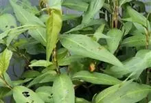 酸模叶蓼 Delarbre),是蓼科蓼属的一年生草本。株高可达90厘米;茎直立,分枝,节部膨大;叶披针形或宽披针形,先端渐尖或尖,基部楔形,上面常具黑褐色新月形斑点,…全部>>
