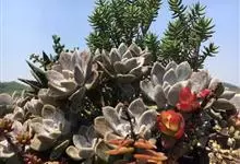 薄叶蓝鸟 叶片蓝绿色,叶尖红色,带粉,花型紧凑,非常漂亮。原产于墨西哥,现世界各地均有栽培。全部>>