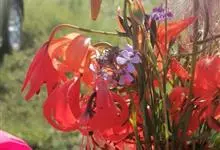 山丹是百合科百合属的多年生草本植物。鳞茎卵形或圆锥形,鳞片长圆形或长卵形,白色;叶散生茎中部,线形,边缘有乳头状突起;花单生或数朵成总状花序,花鲜红色,常无斑点,花被片反卷,…全部>>