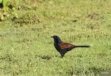 褐翅鸦鹃,是鹃形目鸦鹃科鸦鹃属的鸟类。褐翅鸦鹃的身体为黑色;头颈和胸带蓝紫色金属光泽并具黑亮的羽干纹,下胸至腹部泛金属绿光泽;两翼和肩部为棕栗色,外侧飞羽具暗色羽端,尾羽闪铜绿色光泽;虹膜赤红色,…全部>>