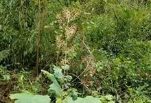 博落回 R. Br.)是罂粟科博落回属直立草本,高可达4米。茎光滑绿色;叶片宽卵形或近圆形,背面多白粉,常呈淡红色;大型圆锥花序多花,顶生和腋生,花芽棒状,萼片倒卵状长圆形;子房倒卵形至狭倒卵形,…全部>>