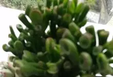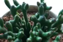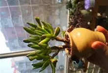 筒叶花月,是景天科青锁龙属的多年生草本植物。植株多分株,灌木状,茎较粗壮,圆柱形,表皮灰褐色;叶片肉质,互生,呈圆筒状,簇生于茎或分枝顶端,叶端呈斜截形,截面为椭圆形;花呈星状,淡白色;花期秋季。…全部>>
