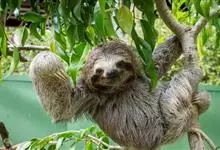 树懒,是披毛目哺乳动物的通称,共有2科2属6种。树懒头又圆又小,耳朵也很小,而且隐没在毛中;上颌有5齿,下颌有4齿,细小而没有釉质;尾巴很短,只有3~4厘米;毛被蓬松长厚,毛色灰褐。因其树懒形状略似猴,…全部>>