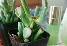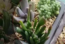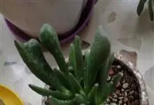 筒叶花月,是景天科青锁龙属的多年生草本植物。植株多分株,灌木状,茎较粗壮,圆柱形,表皮灰褐色;叶片肉质,互生,呈圆筒状,簇生于茎或分枝顶端,叶端呈斜截形,截面为椭圆形;花呈星状,淡白色;花期秋季。…全部>>