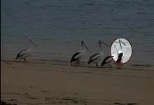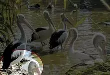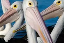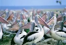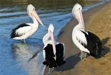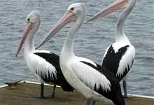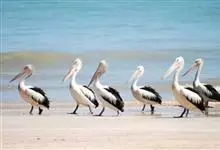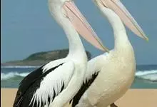 澳大利亚鹈鹕是一种大型涉禽,体重达13千克。生活于沿海及河川、湖泊等处。飞行力强而悠逸,常群飞群栖,极善于游泳,但不会潜水。游泳时张口捕鱼,将捕得的鱼兜入喉囊内。有时结群,排成长线,…全部>>
