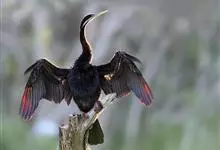 黑腹蛇鹈是蛇鹈科、蛇鹈属鸟类。黑腹蛇鹈是一种长颈鸟,大小和形状与鸬鹚科相似。平均而言,黑腹蛇鹈的长度在850~900毫米之间。它拥有长而直的喙、长脖子、长尾巴和有蹼的脚。翼展长116~128厘米。…全部>>