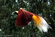 大极乐鸟是极乐鸟属中最大的鸟种。成年雄鸟体长可达到43厘米,雌性可达35厘米。雄鸟的额、颊、喉等墨绿色;头、颈黄色;上体暗赤栗色;腹部葡萄红色,胁部有长饰羽,其基部橙黄,中部黄色,…全部>>