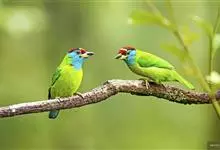 蓝喉拟啄木鸟,是须鴷科、拟啄木鸟属的鸟类。蓝喉拟啄木鸟为小型鸟类,体长20-23厘米。前额至头顶鲜红色,其上有一宽阔的黑色横带,将此红色分为前后二块;头侧、颏、喉蓝色,下喉两侧各具一红色点斑。…全部>>