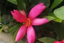 浙江红山茶是山茶科山茶属植物,小乔木,高6米,嫩枝无毛。叶革质,椭圆形或倒卵状椭圆形,长8-12厘米,宽2.5-5.5厘米。花红色,顶生或腋生单花,直径8-12厘米,无柄。蒴果卵球形,果宽5-7厘米…全部>>