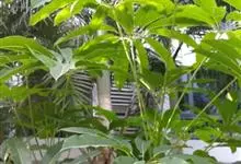昆士兰伞木,吕松鹅掌柴 ,称昆石兰遮树,澳洲鸭脚木、方式叶鹅掌柴、伞树、大叶伞。叶片阔大,柔软下垂,形似伞状,株形优雅轻盈,易于管理,适于客厅的墙隅与沙发旁边置放,是室内理想的观叶植物。但目前多由…全部>>