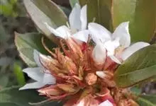 厚叶石斑木 Makino)是蔷薇科,石斑木属常绿灌木或小乔木,枝粗壮极叉开,枝和叶在幼时有褐色柔毛,后脱落。叶片厚革质,长椭圆形、卵形或倒卵形,圆锥花序顶生,萼筒倒圆锥状,萼片三角形至窄卵形;花瓣白色,…全部>>