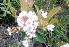 石斑木 Lindl.)是蔷薇科石斑木属植物,常绿灌木,稀小乔木,高可达4米;幼枝初被褐色绒毛,以后逐渐脱落近于无毛。叶片集生于枝顶,卵形、长圆形,稀倒卵形或长圆披针形。顶生圆锥花序或总状花序,…全部>>