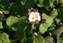 海滨木槿是锦葵科木槿属植物,落叶小乔木,株高3-5米,胸径20厘米,扁球形树冠,枝叶繁盛。厚纸质单叶互生,扁圆形、倒卵形或宽倒卵形,先端钝近平,具短突尖,基部圆形或浅心形,叶缘中上部具细圆齿,…全部>>