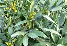 十大功劳 Fedde),小檗科十大功劳属常绿灌木植物。叶子较大且较多,呈椭圆形,绿色,表面光滑无毛,叶柄较长;花朵较小,呈多边形,黄色,花瓣对称分布,表面有绒毛;果实呈圆形,褐色,…全部>>