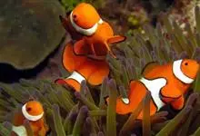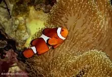 小丑鱼是鲈形目雀鲷科小丑鱼属鱼类的统称。体长仅5—6厘米。身体色彩艳丽,多为红色、橘红色;除透明的胸鳍与软背鳍鳍条外部,其余鳍均为黑色。体形怪异,体色多变,通常体侧有白色条纹。…全部>>