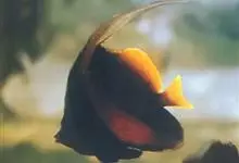 眼斑双锯鱼,背鳍硬棘被橘黄色斑块分割为5-6枚,第4枚最长,约为头长的2.1-2.9倍。胸鳍、臀鳍、背鳍、尾鳍被橘黄色斑块分割部分都具黑缘,黑缘之外还有一透明外缘。体侧3块白斑明显可见,形状不规则,…全部>>
